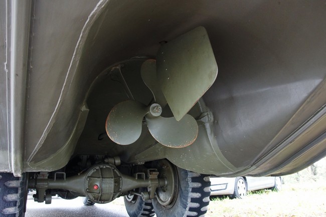Door de scheepsschroef presteerde de Dukw prima in het water. -