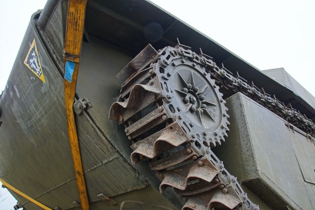 Dit in tegenstelling met de Buffalo die in het water voortbewogen werd met schoepjes die op de tracks zitten. -